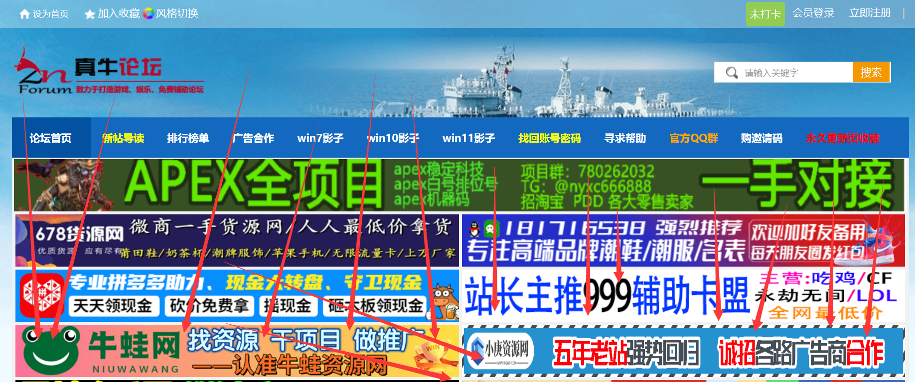 全站顶部显示横幅说明:PC+WAP所有页面全部显示