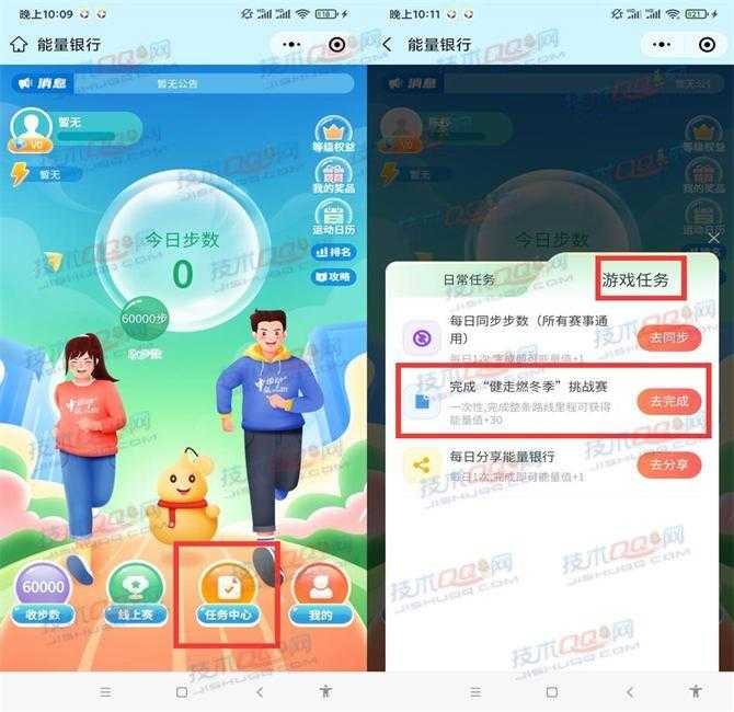 3、点击底部【任务中心】-【游戏任务】-【完成“健步燃冬季”挑战赛】进入