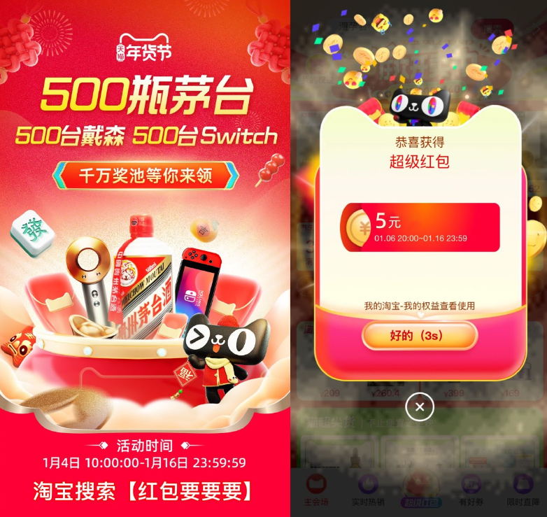 1、淘宝APP搜索【红包要要要】准点抽必中、必中、必中->红包号多可以换号抽!