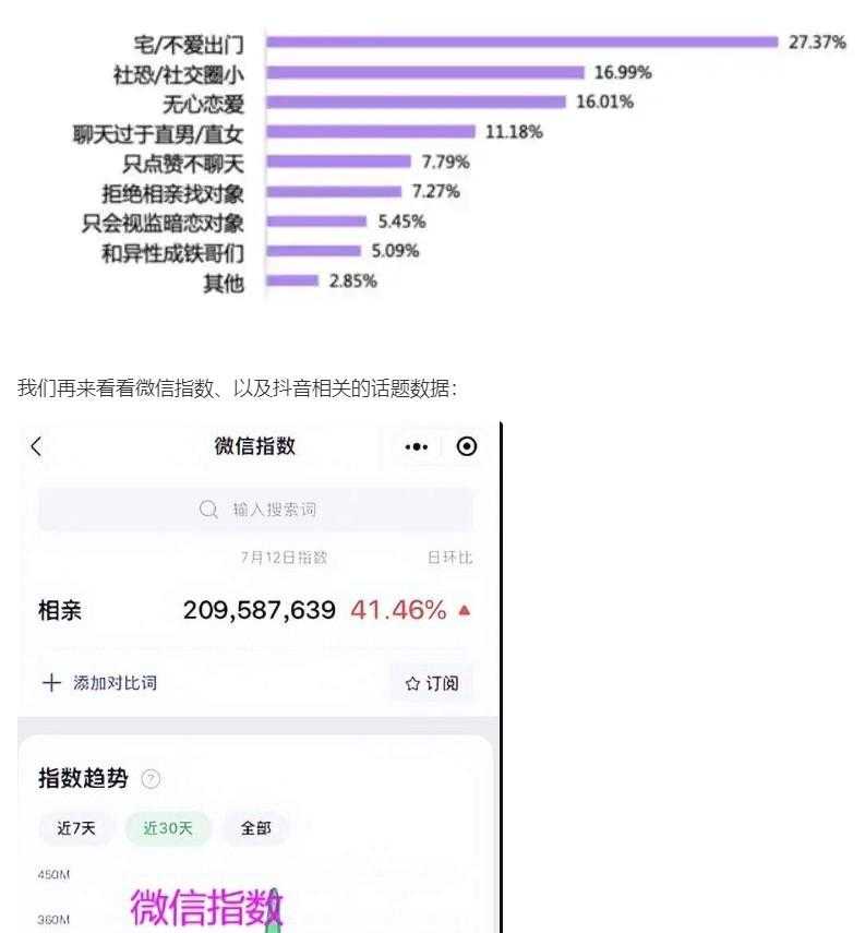 在网上查了一些数据,得知2021年单身人口突破3亿!单身人数如此之多,相亲市场注定火爆。我也看到一份报告显示,27.37%的90后认为家是他们单身的原因,因为90后单身且交际圈小的比例也达到了16.99%。