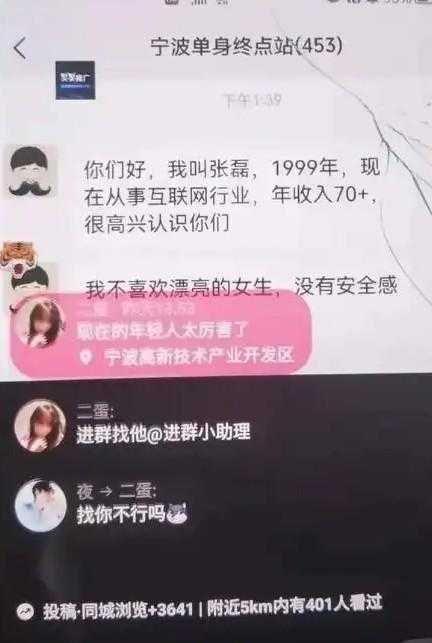 我们来看看同行的操作,就是利用抖音发布微信交友群的聊天记录。内容很简单,就是一个文案。