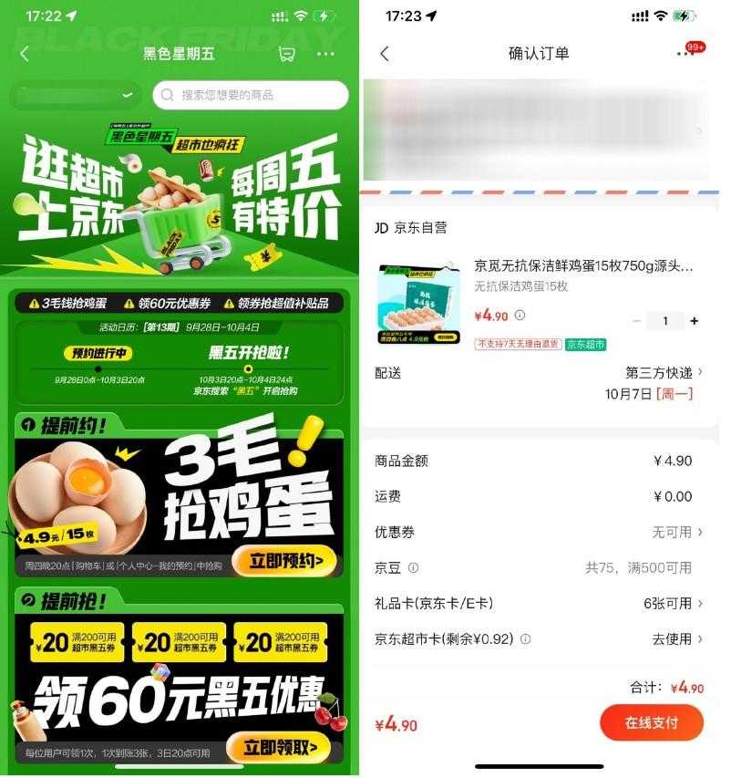 京东APP搜索“周五神价888”->指定时间抢10-9亓券,可以买鸡蛋、卷纸等等