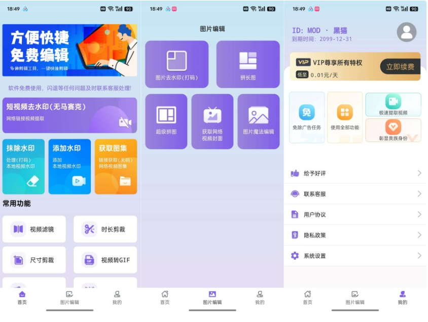 【软件介绍】:免费短视频去水印 去水印 免VIP使用,支持短视频去水印、加水印、视频裁切、视频剪辑、视频设置封面、视频倒放、视频压缩、视频变速,支持视频、图片去水印,框选水印区,可批量去水印,一键操作,非常快速