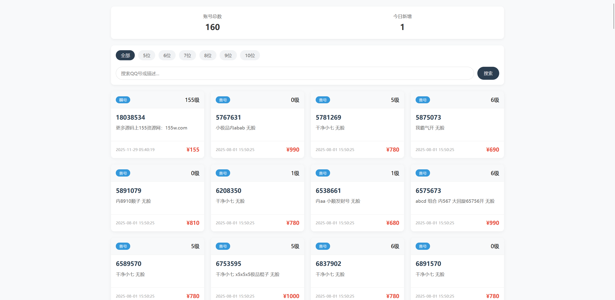 扣扣号码展示网站源码_号码售卖展示系统源码 全开源 带后台 多套首页模板 附教程