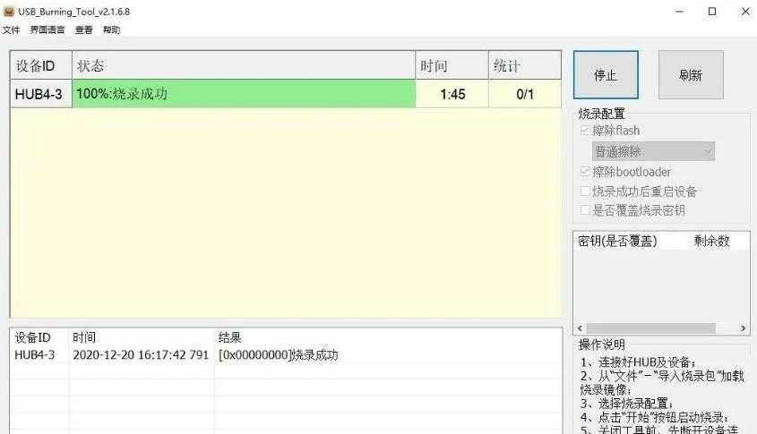 1、打开刷机工具,导入固件,导入成功后,默认烧录配置勾选,不用动,然后点击开始。