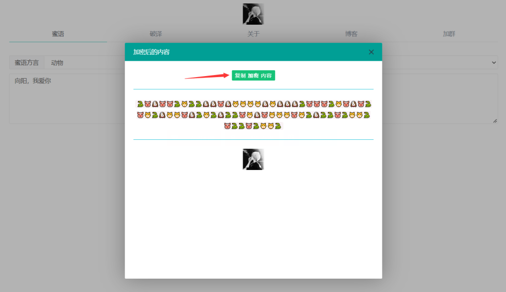 然后复制蜜语的内容给好友,然后让他们访问我们的网站就好了