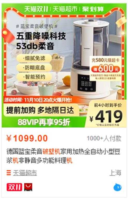 举个例子,比如这个破壁机,售价为1099元