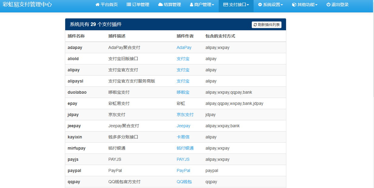 彩虹易支付系统开源郑州追梦网络科技有限公司旗下的免签约支付产品,(本站已经用了很多年了,修修改改,虽然不是最新版这也够用,最新版的有可能有后门,不建议更新,还有自己原创开发做了一款响应式自适应模板),彩虹支付系统完美解决支付难题,一站式接入支付宝,微信,财付通,QQ钱包,微信wap,帮助开发者快速集成到自己相应产品,效率高。目前分享给你们了2023年2月5发布!