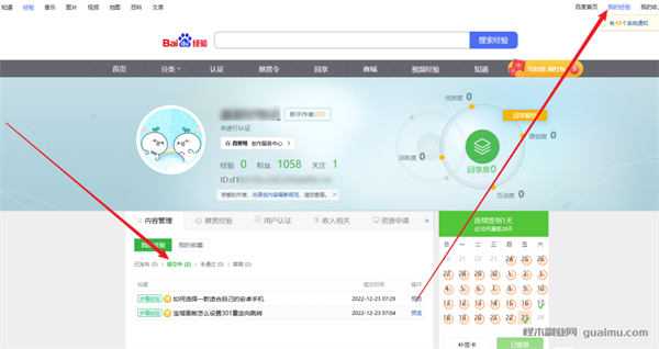在右上角点击我的经验,内容管理就可以找到刚刚所提交的经验了!