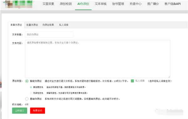 好了,不废话,直入主题,同样文章也不可能做到百分百全自动,但是半自动也是可以的,把你想要借鉴的文章内容直接复制然后粘贴到自动AI伪原创里面, 现在市面上有很多类似的网站或软件。(大多需要收费,普通的平均费用在一毛钱一篇,像5118这种专业一点的收费会略贵)