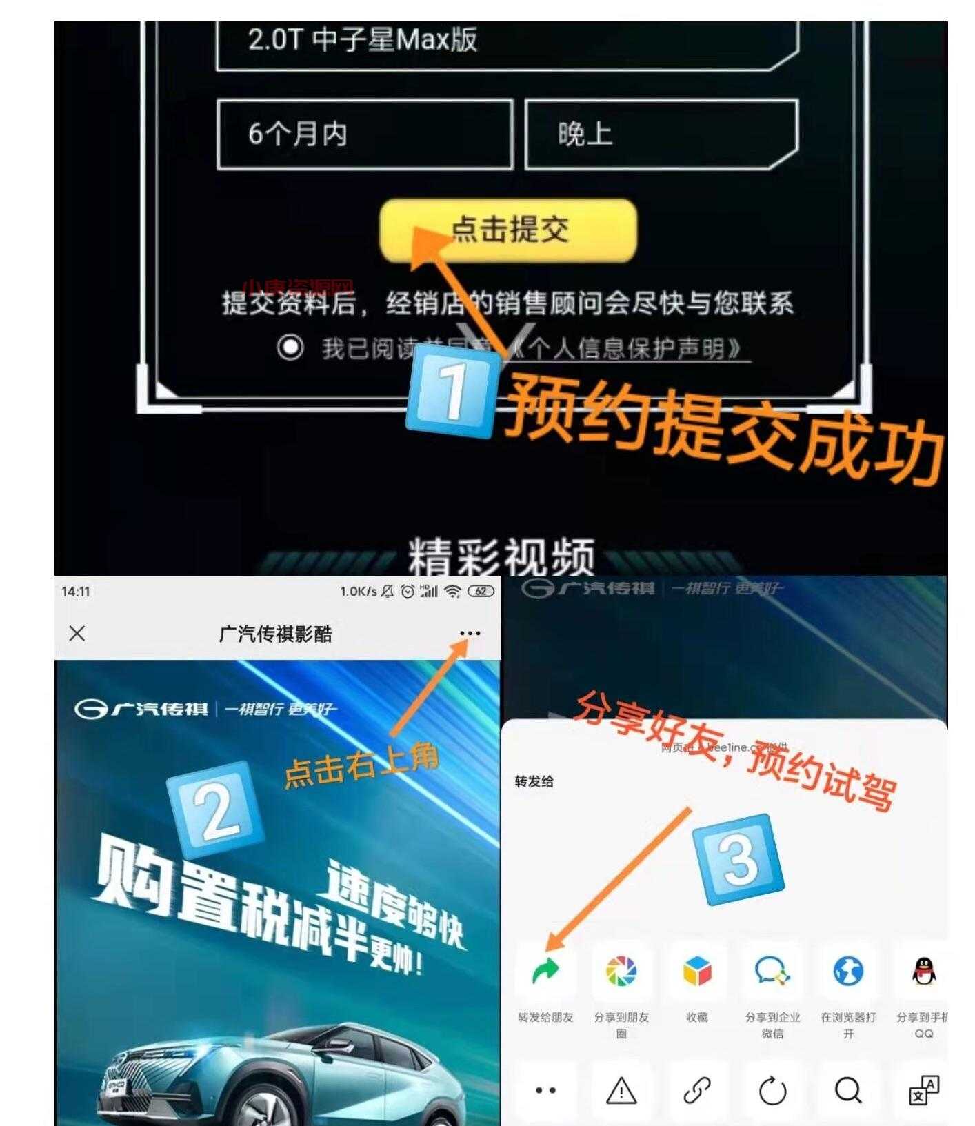 复制到VX打开,预约试驾成功有包,再点击右上角,分享邀约好友预约成功也有包,速