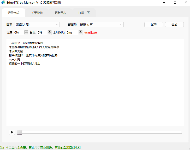 支持多人配音、全局间隔、免费微软配音工具