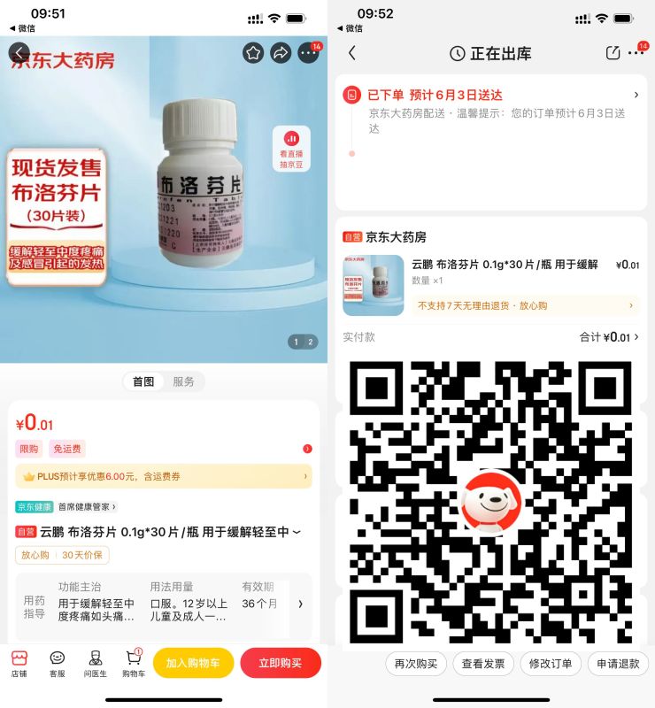 京东0.01元撸布洛芬30片包邮