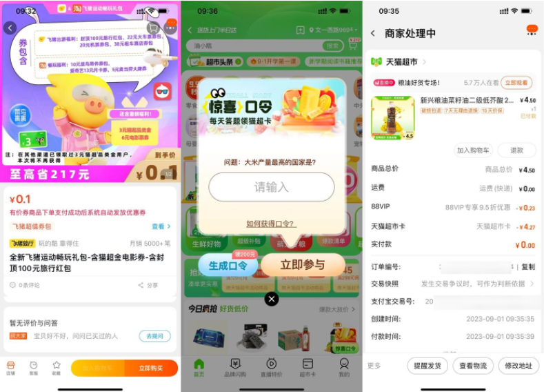 3、0.1元买飞猪券包,自动赠送3元粮油品类金https://tb3.cn/AWkJDD