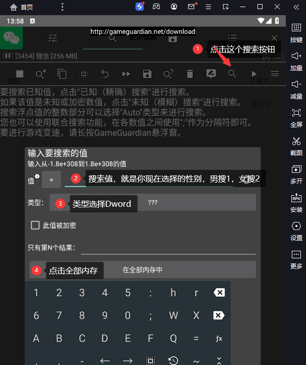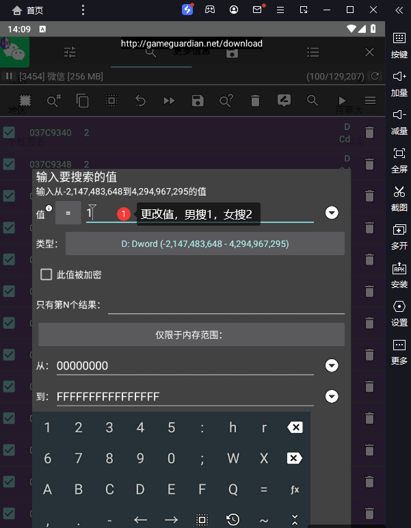 3. 然后根据图中步骤设置点击搜索,看你选择的性别是什么,男就搜1,女就搜2,我上面是选的女,值填2,搜索