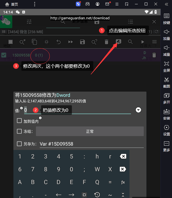 2. 打开GG和微信,在**微信-更多信息**这里点GG图标附加微信主进程,内存占用最大的那个就是