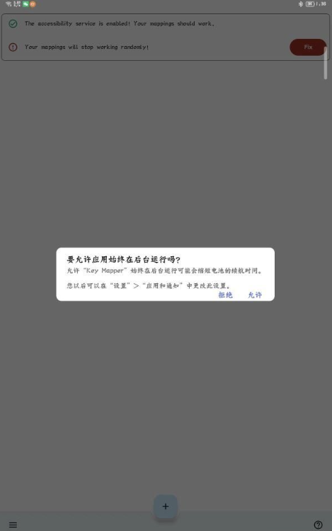 1、进入软件后点击上面的fix打开无障碍和后台运行