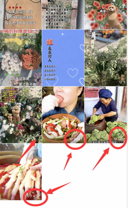 但后面你看看他发的视频,内容就偏了,不发和泡菜相关的了,点赞也没有了,不知道作者是怎样考虑的。从内容上来看,作者大概率是运营了N多个账号。