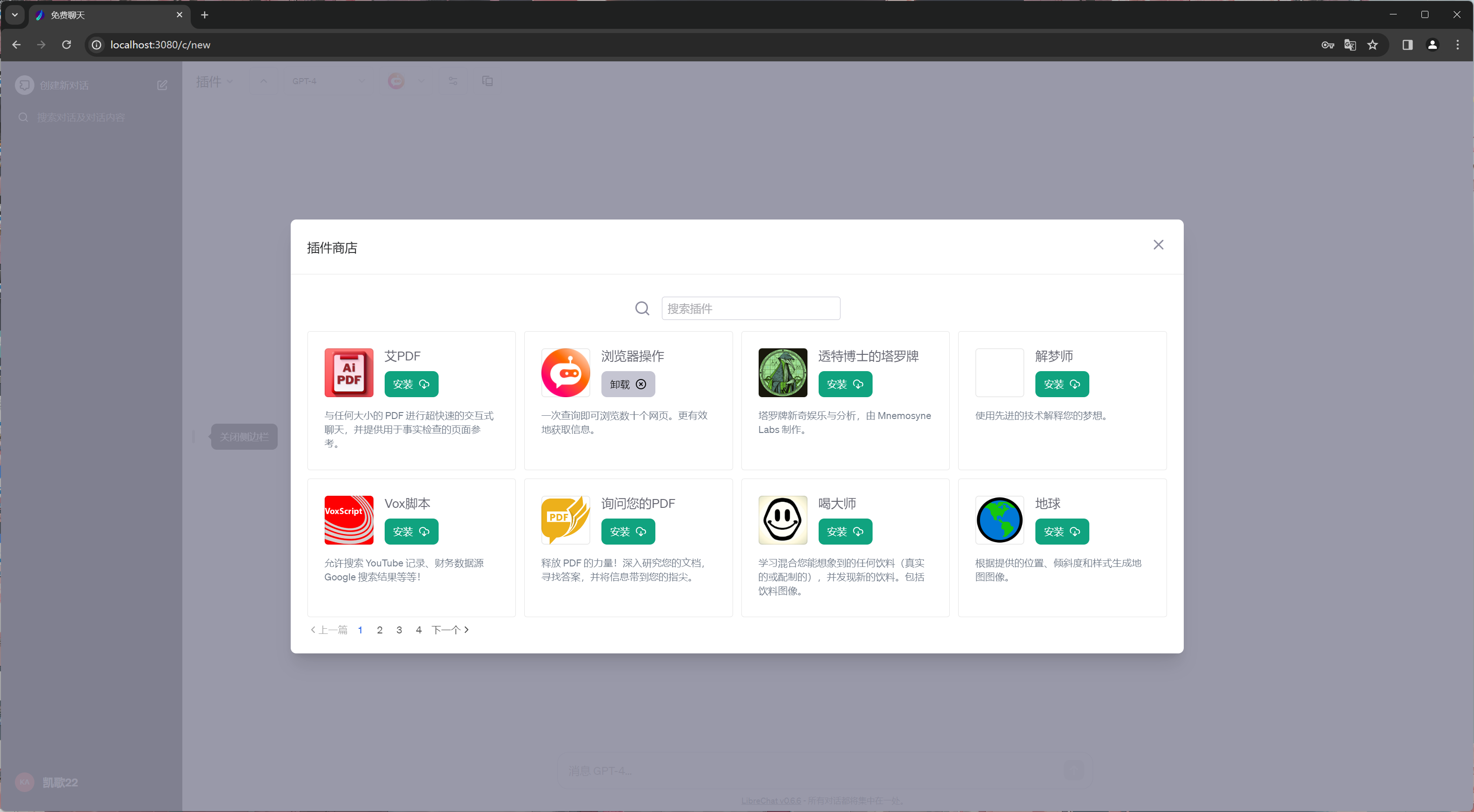 本地部署LibreChat支持插件白嫖GPT4