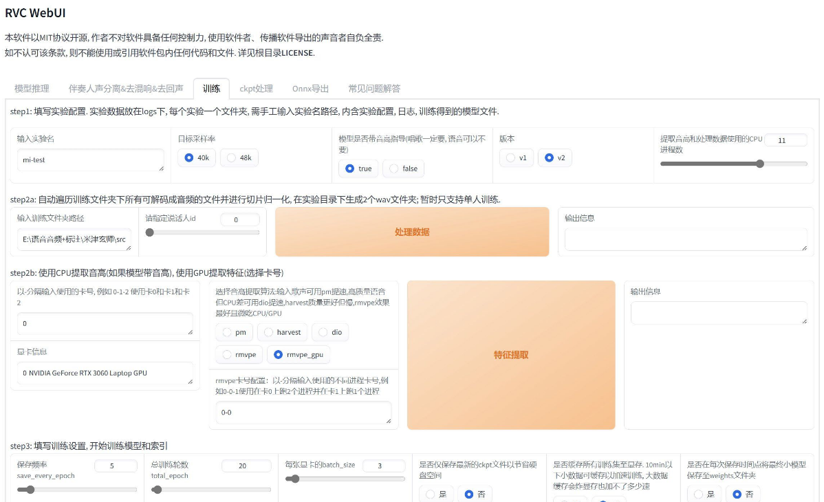 项目地址:https://github.com/RVC-Project/R ... ce-Conversion-WebUI