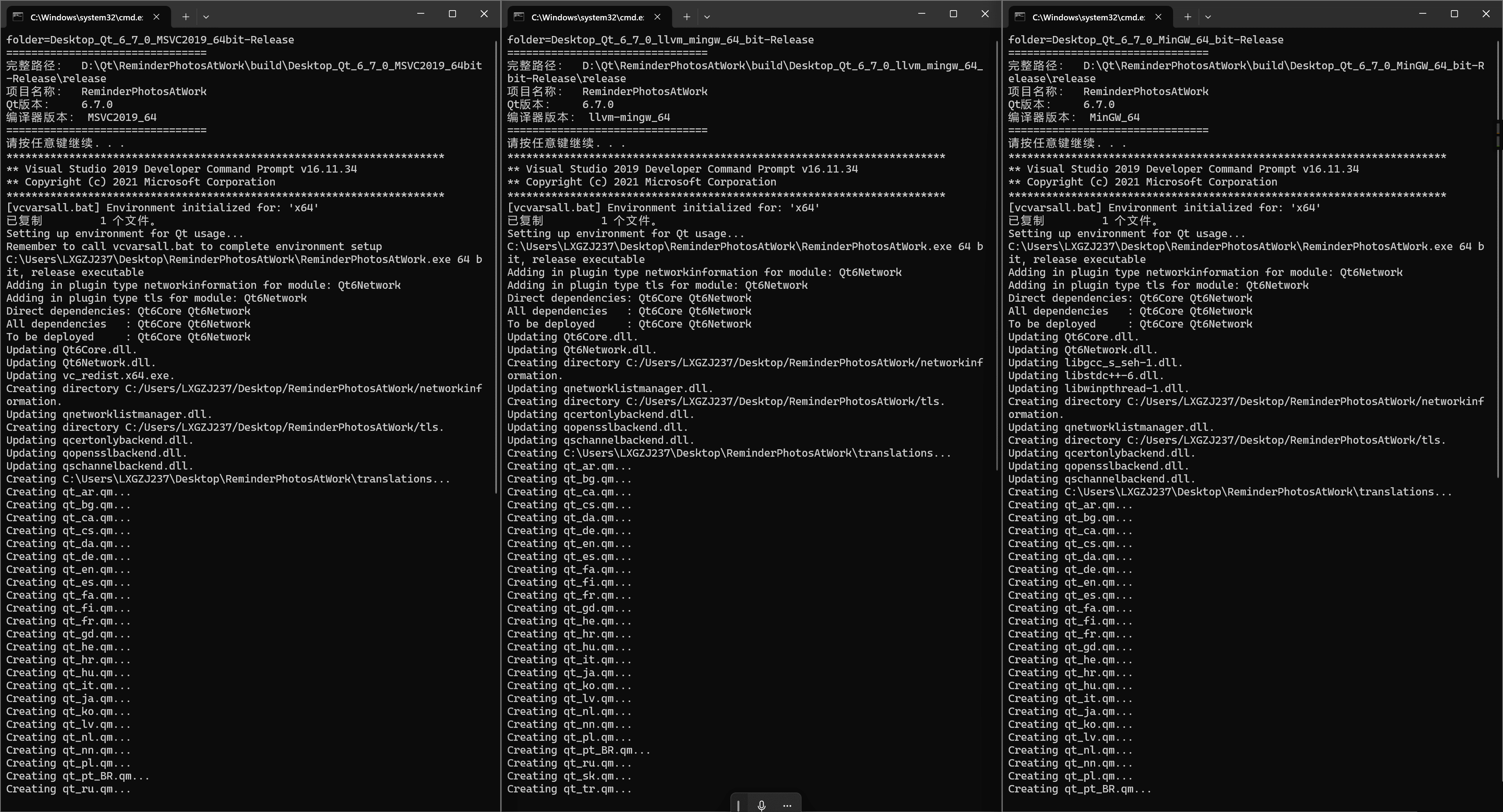 适配了Qt的三个编译器,msvc2019_64、mingw_64、llvm-mingw_64,其他编译器基本用不到所以没搞。