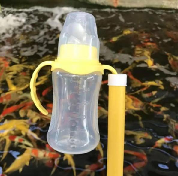 它的吃奶习性也是由专业饲养员长期训练出来的。首先要用饵料喂养几天,让其熟悉饵料的味道,然后再将其饿上几天。将饵料混合一些钓鱼用的诱食剂碾成糊状,装入奶瓶。奶瓶开口设置大一点,然后将奶嘴伸进水里,轻轻晃动或挤压奶瓶,让糊状的饵料流入水里,鱼嗅到水里的饲料味就会有食欲。经过长期的训练,鱼就会直接找到奶嘴进行吸吮了。所以,吃奶鱼只是用奶瓶进食,但实际上吃的并不是奶,还是饵料,湖状的饵料而已。